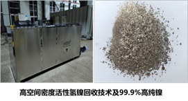 采用自主研发的高效催化活性氢还原技术,以电镀镍废水和锂电池回收的镍盐为原料,制备产品纯度高达99.9%以上的单质镍金属、低熵合金、高熵合金等系列产品。提出了基于高空间密度活性氢的镍回收理论,研发了面向高纯镍有效生成的靶向破络技术,开发了高纯镍回收智能装备及其动态调控策略。