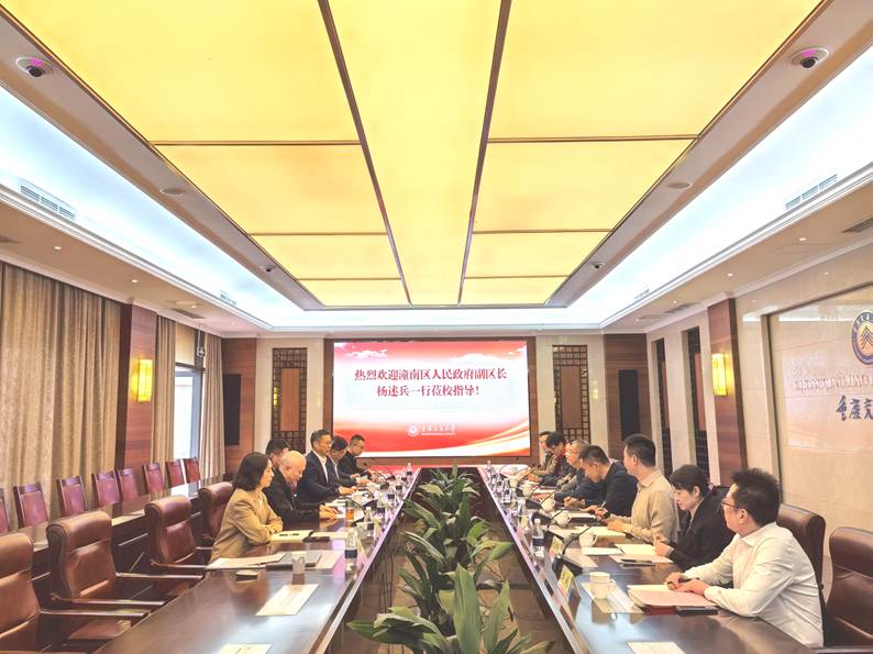 为推动校地合作,加快推动潼南区科技创新和成果落地,10月30日下午,潼南区人民政府副区长杨述兵、区科技局党组书记贺承浩、区科技局局长朱冰清、区工投集团总经理罗波、区经济信息委党组成员/副主任但汉辉、重庆电力高等专科学校电力工程学院副院长冉懋海、潼南高新区管委会招商部部长谭诚、区科技局创新发展科负责人樊喜龙一行莅校指导交流。交流会在南岸校区明德楼国际会议室举行,会议由重庆交通大学副校长罗均主持,副校长董绍江、原副校长黄承锋、科技处及轨道-隧道-管道综合交通工程技术融合创新研究院负责人等相关人员出席。