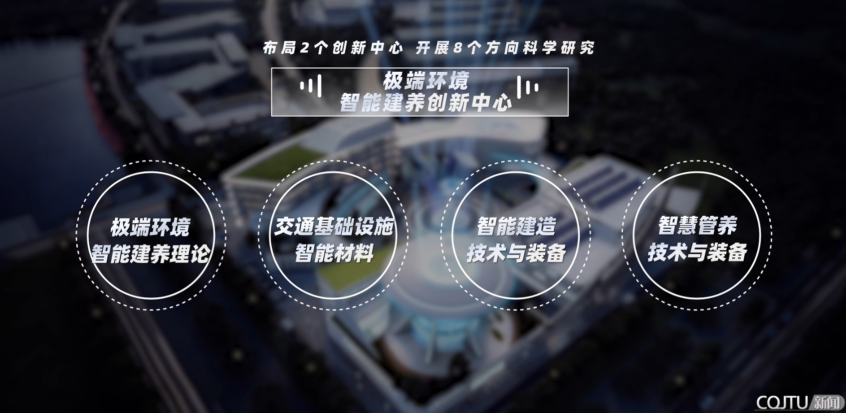 前沿技术交叉研究院始终坚持“四个面向”,心怀“国之大者”,主动瞄准世界科技前沿和国家战略需求,以“智慧、交融、创新、卓越”为价值引领,以“国际一流的前沿技术研发高地、高端人才聚集高地、产业升级引领高地”为建设目标,成立了极端环境智能建养创新中心、数智交通创新中心等中心,主要聚焦极端环境(极热极寒、地震频发、高盐碱、暴雨/雪、持续高温等)下的交通基础设施智能建养关键科学问题和技术难题,未来空地智联协同立体交通体系建设关键科学问题和技术难题两大研究领域。